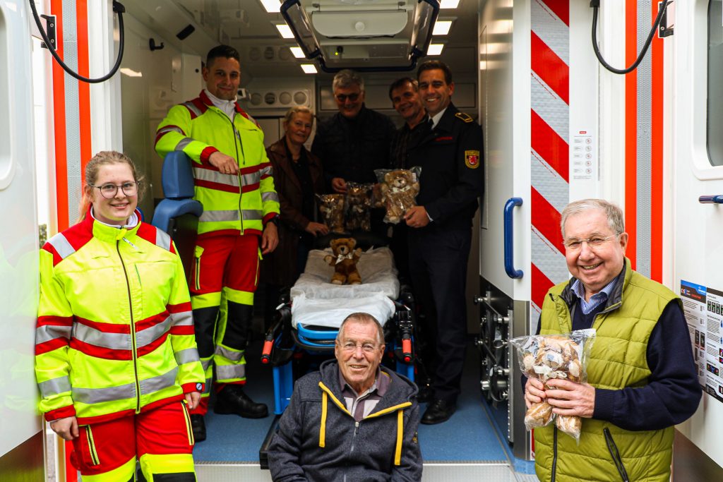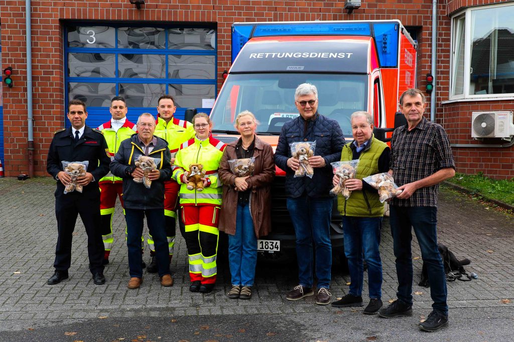 Als zuverlässiger Partner der Feuerwehr erweist sich hierbei immer wieder die Bürgerstiftung Herzogenrath. Gerne vermittelte die Bürgerstiftung den Kontakt zu Ralf Nowak und Günter Hänel die mit dem Erlös von gesammelten Pfandflaschen den Kauf von 96 Teddybären möglich machten.